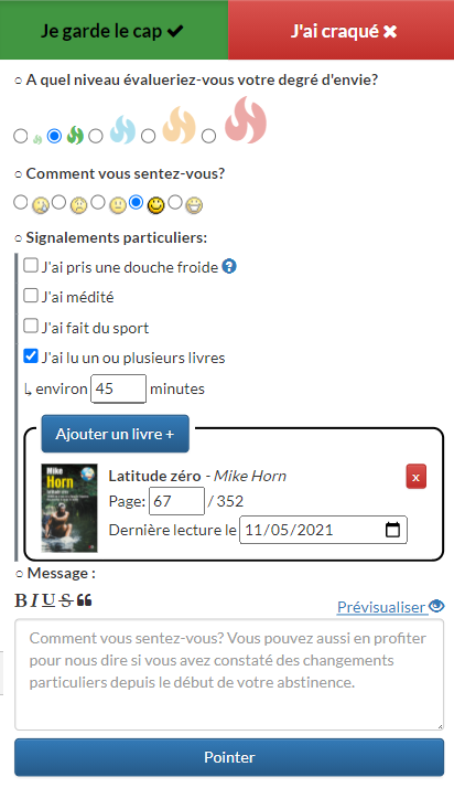 Partagez tous vos états d'âme quand vous en ressentez le besoin auprès des autres membres de la communauté via le module de pointage.