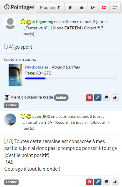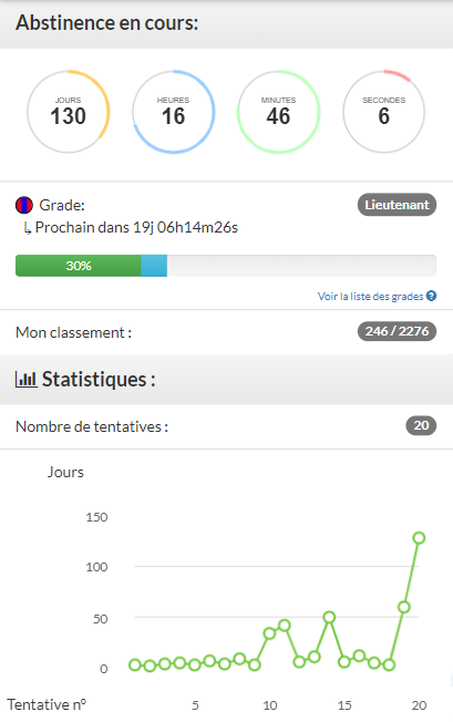 Plus votre compteur de jours d'abstinence augmente, meilleur sera votre grade et votre positionnement dans le classement.